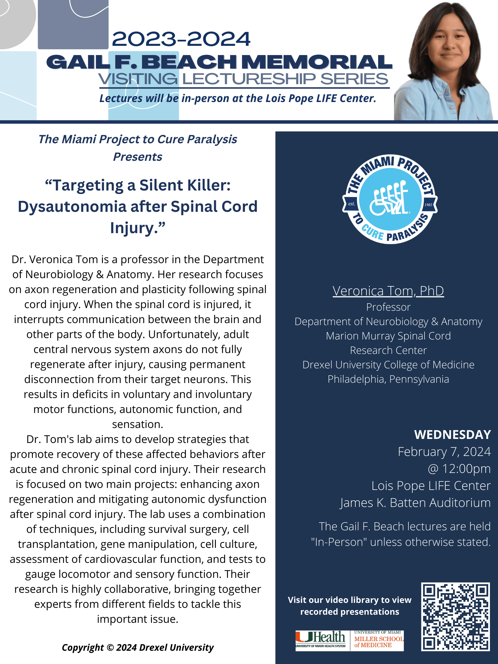 Dr. Veronica Tom: Targeting a Silent Killer: Dysautonomia after Spinal Cord Injury