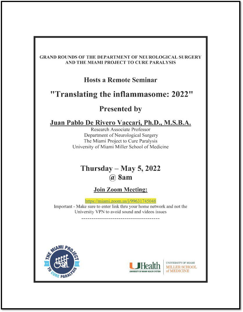 ZOOM: Translating the Inflammasome: 2022 — Juan Pablo De Rivero Vaccari, Ph.D., M.S.B.A.